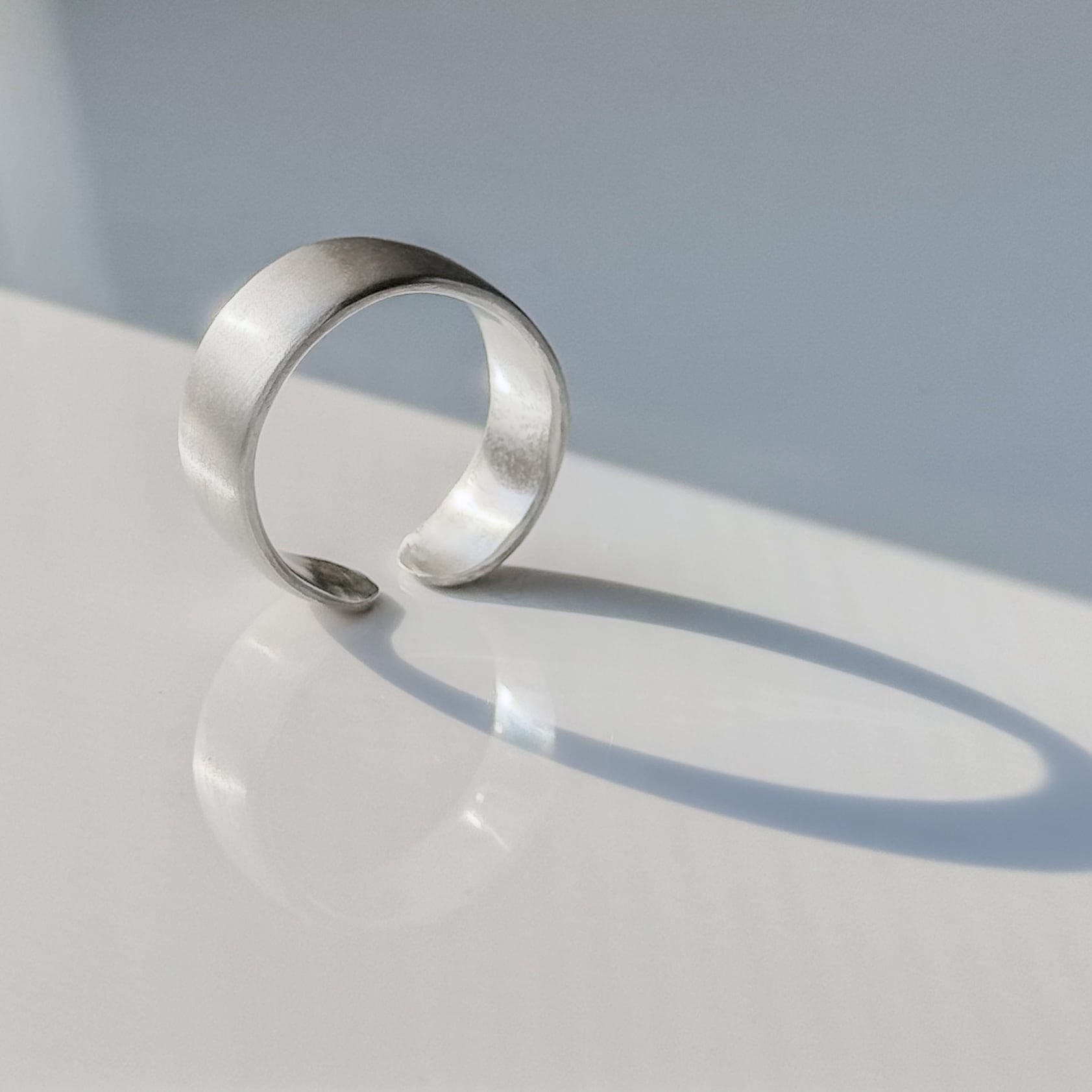 シルバーの持つ凛とした美しさを、まっすぐに引き出した幅広リング。