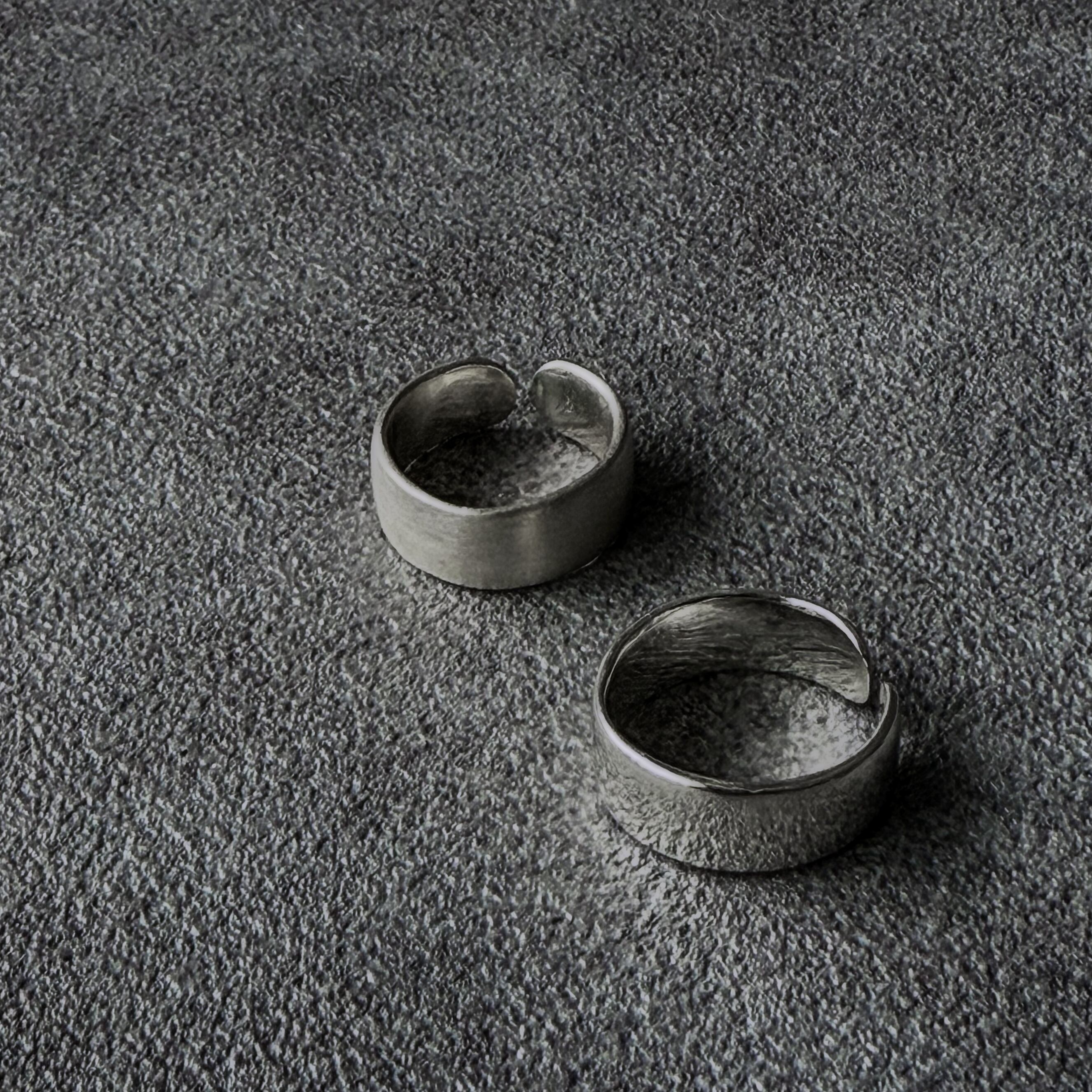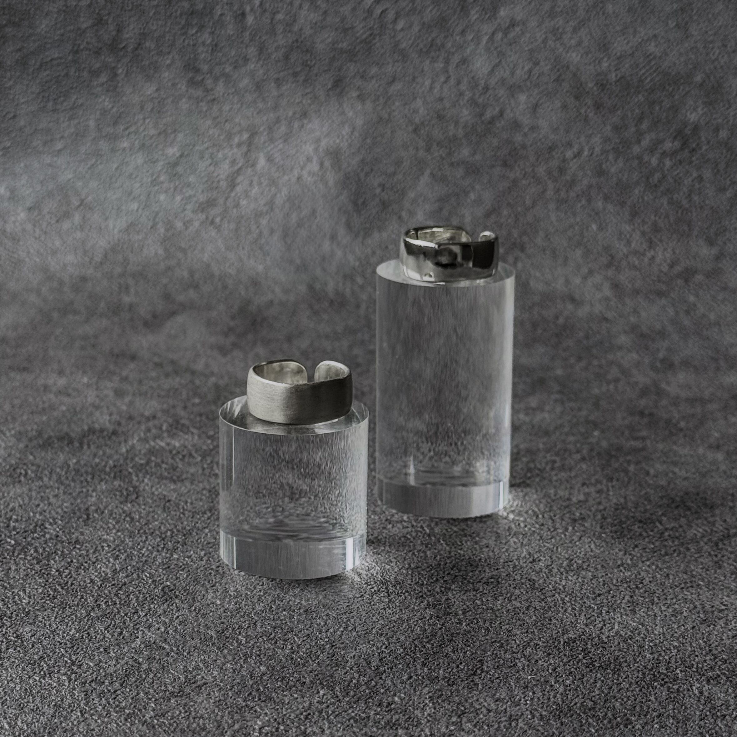 フラットな面と幅広のシルエットが、仕上げの違いによって異なる表情を見せます。