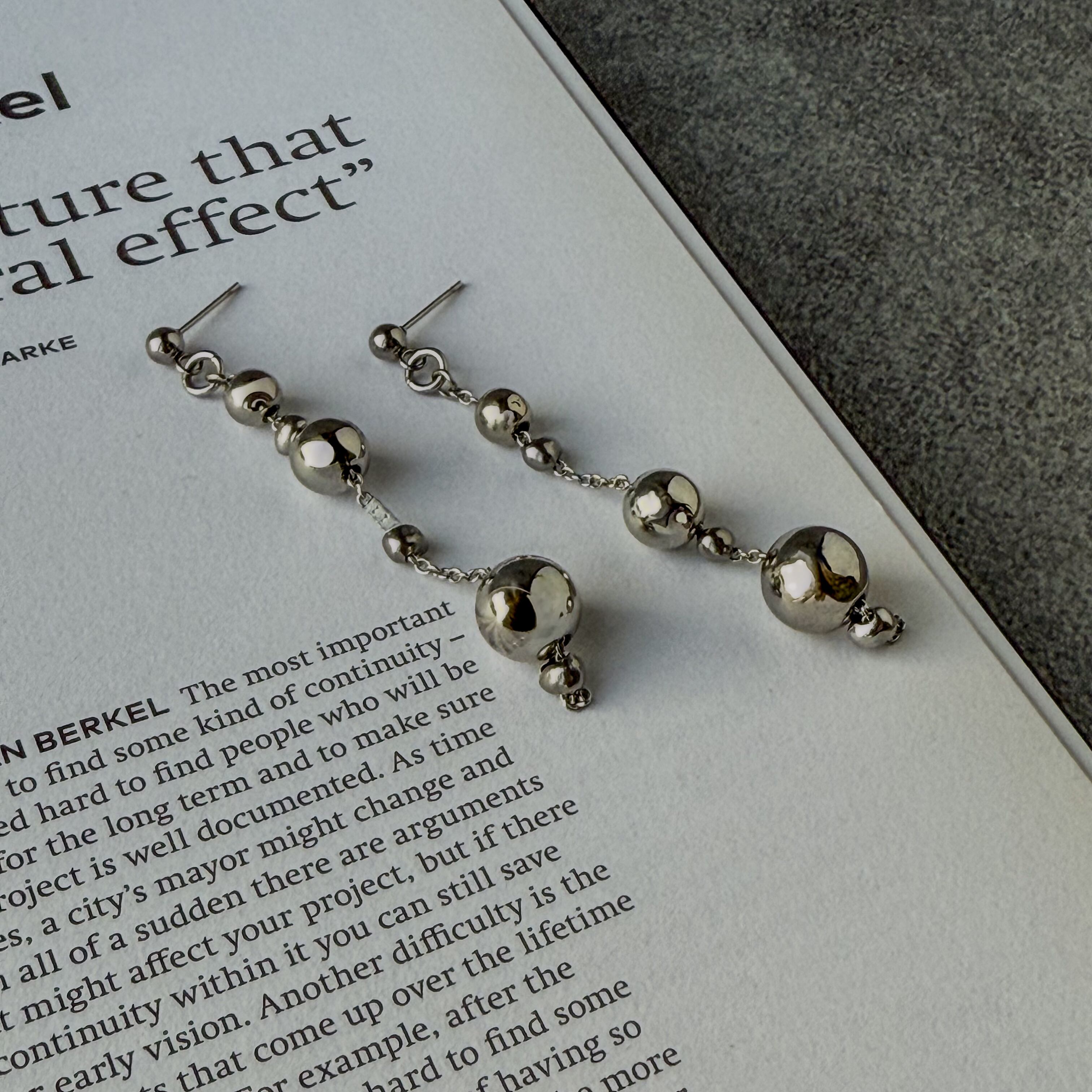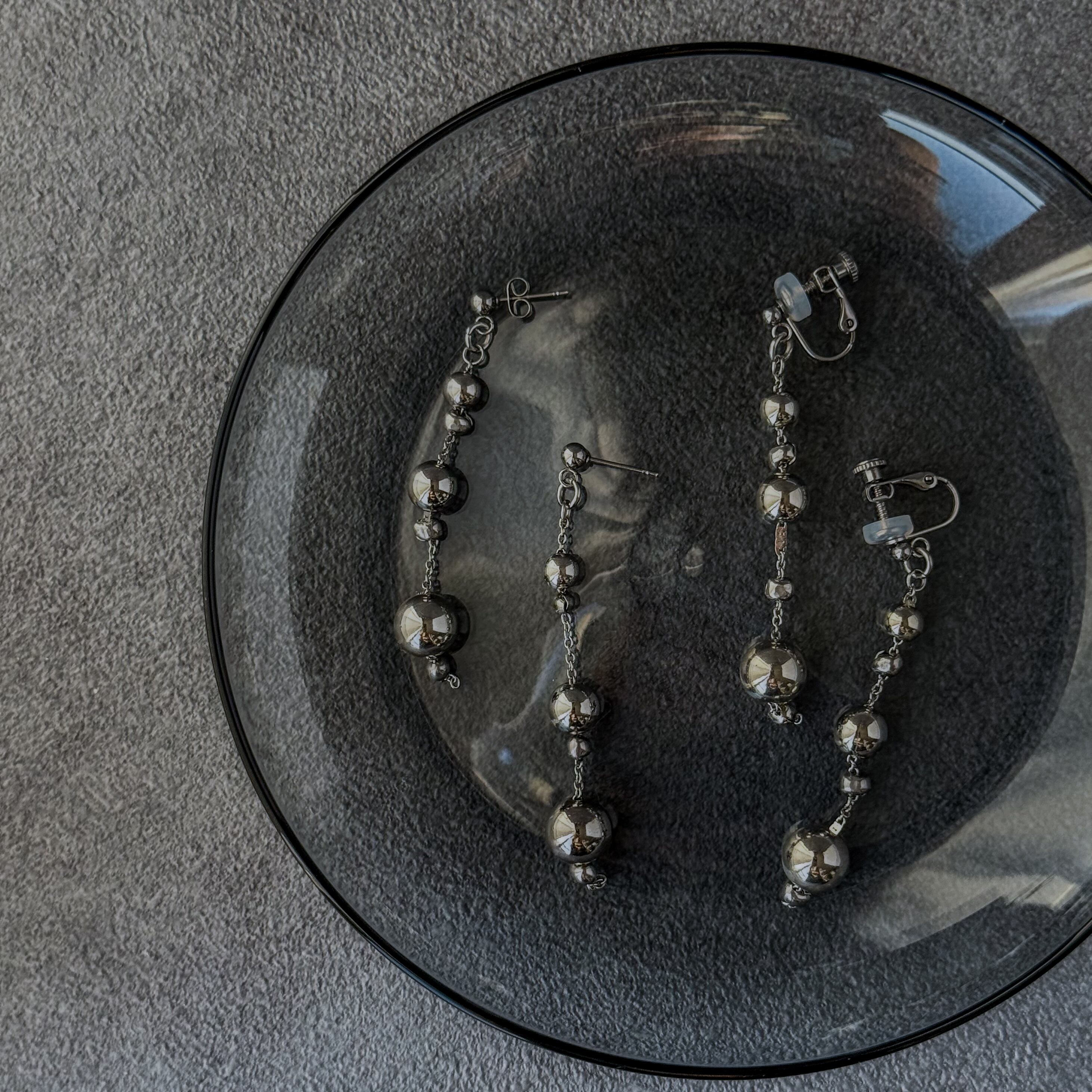 シャボン玉のような軽やかさと、メタリックな艶めきを併せ持つ大ぶりなピアス/イヤリングです。