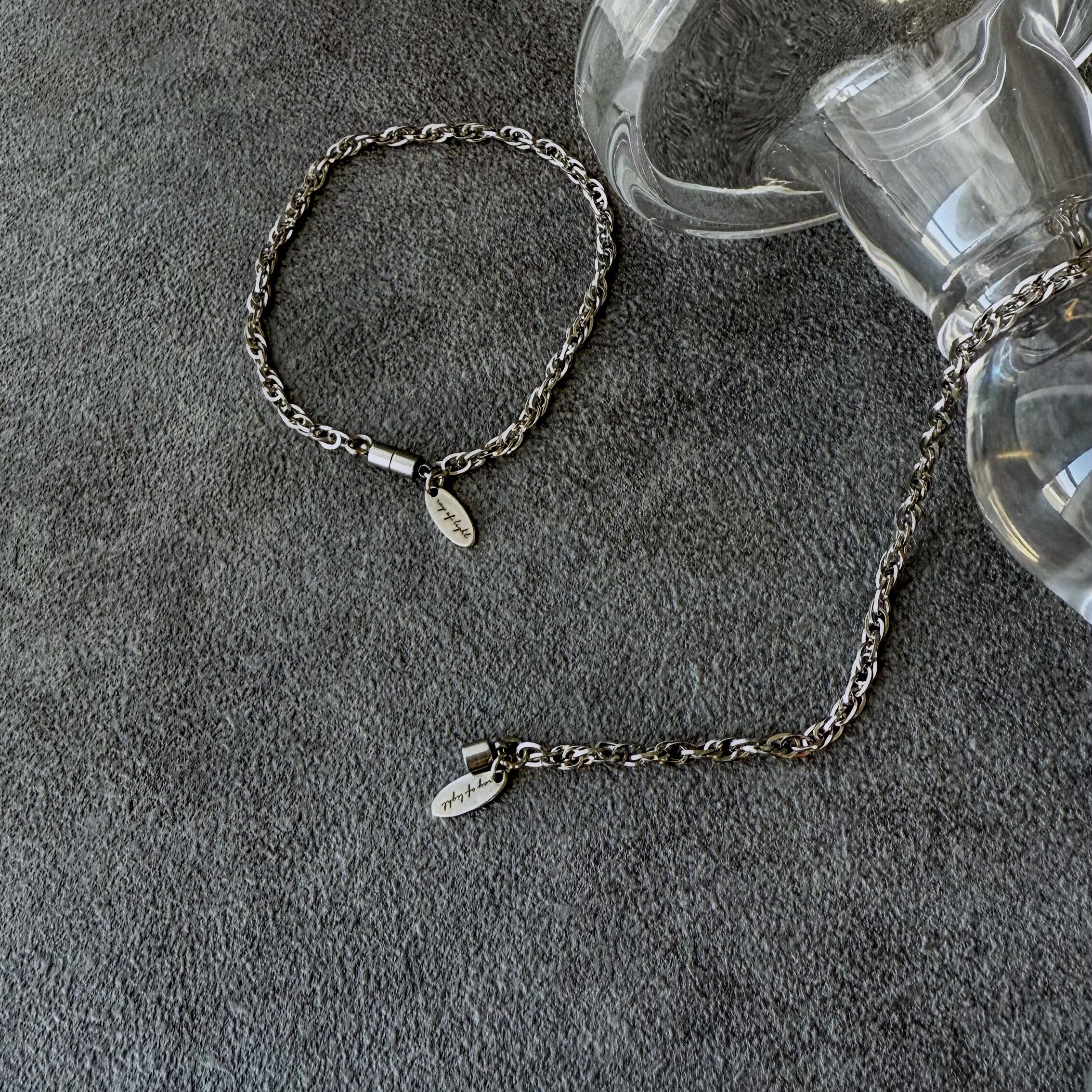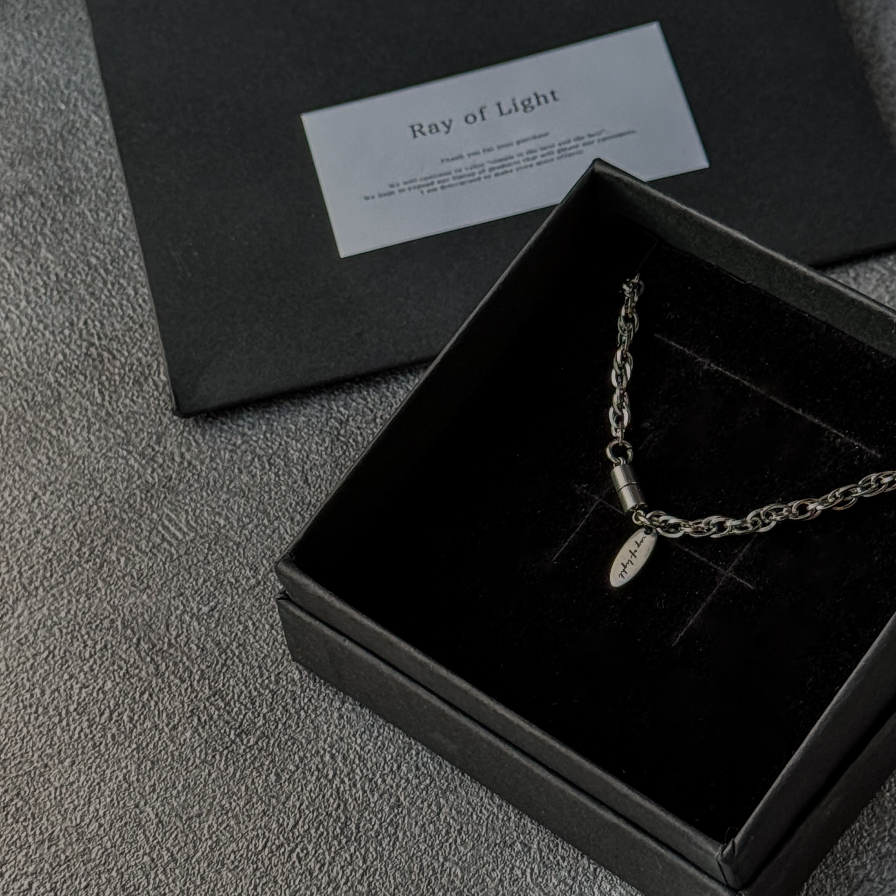 光のラインのように、手元にすっと馴染む細身のブレスレットです。