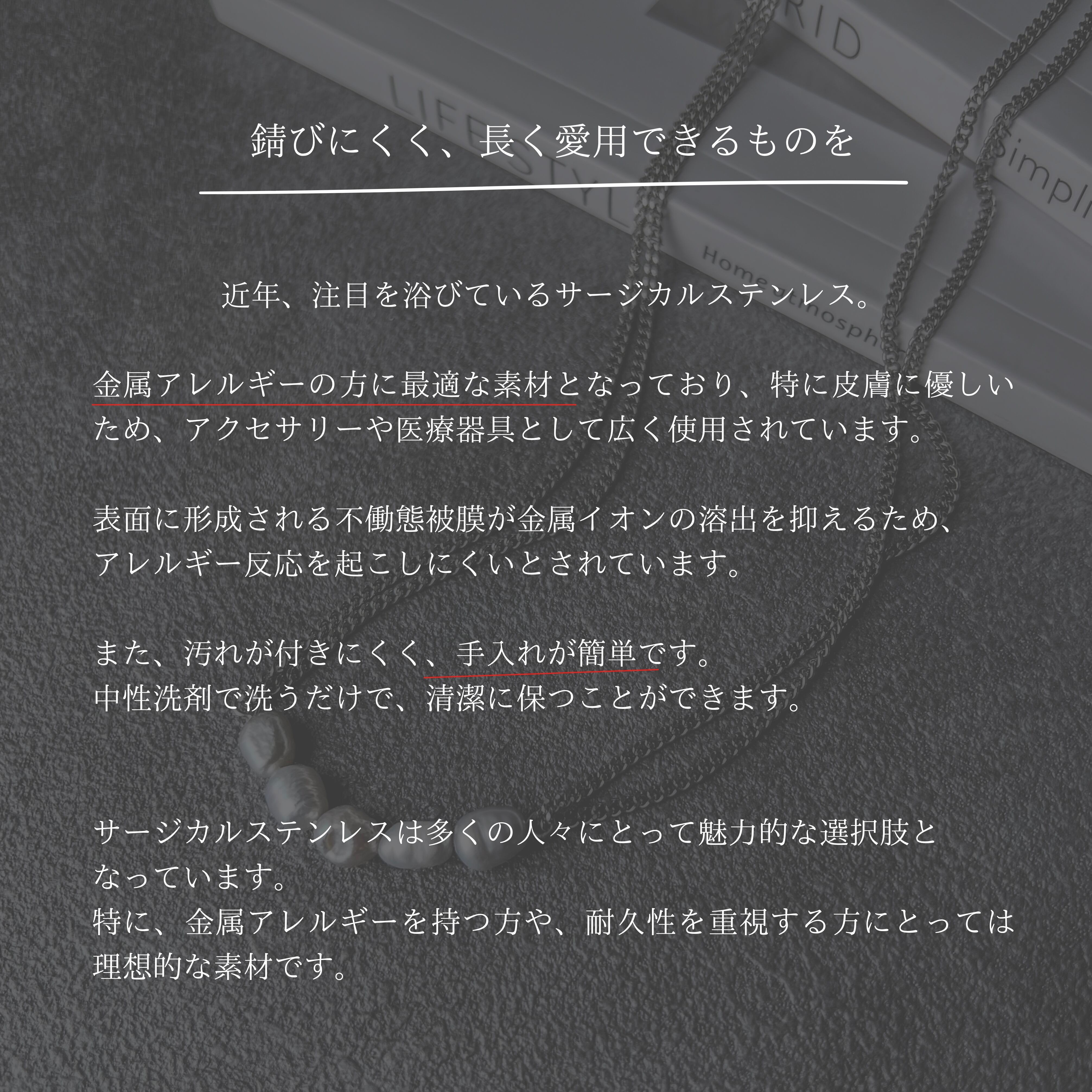 素材は、変色しにくくお手入れも簡単なサージカルステンレス。