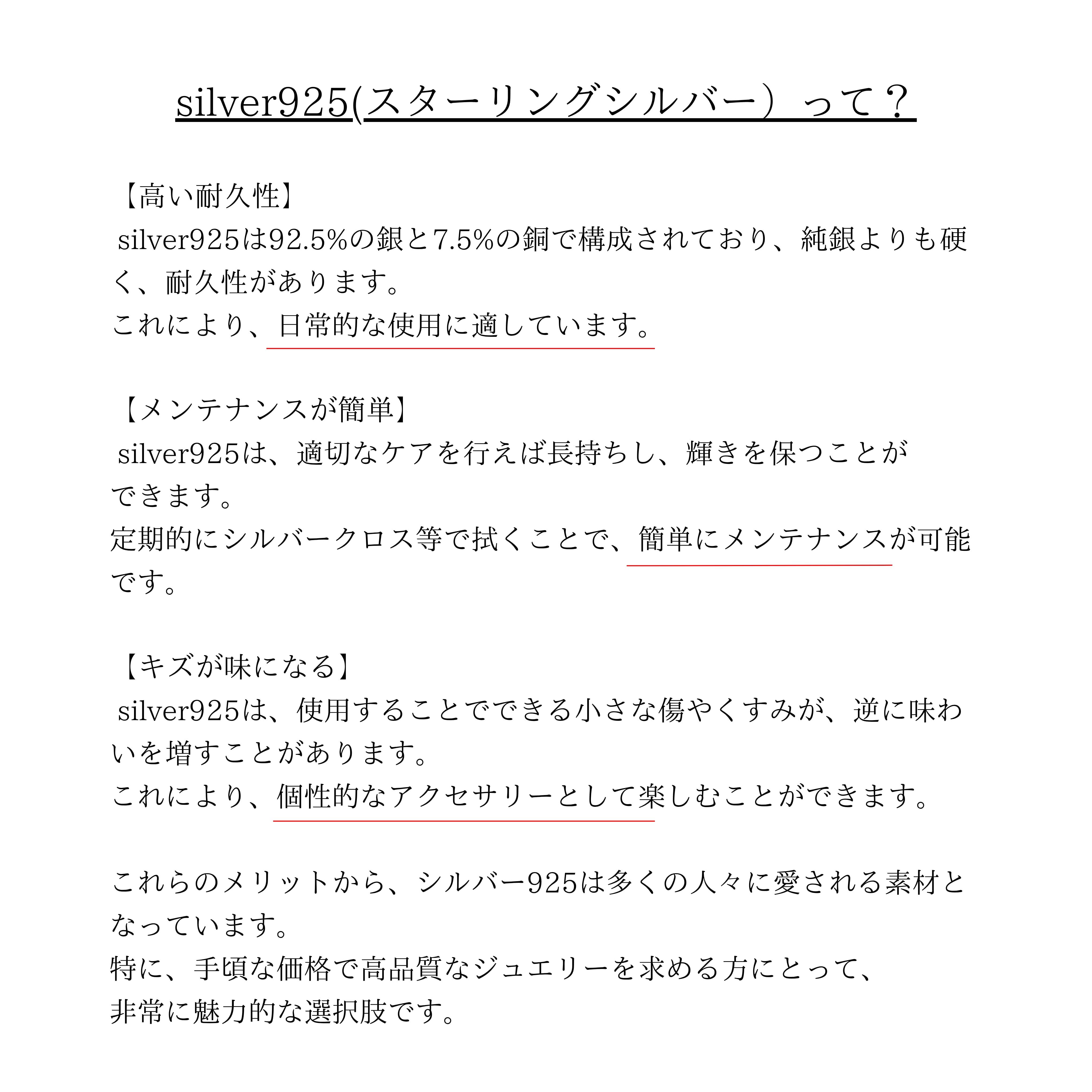 本製品は、silver925の美しさを長くお楽しみいただけるよう、透明コーティング(ジュエリープロテクト)を施しています。