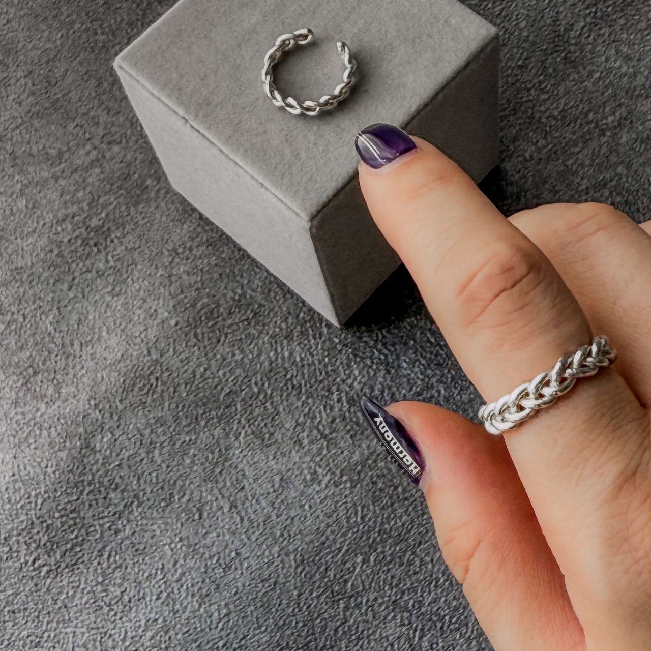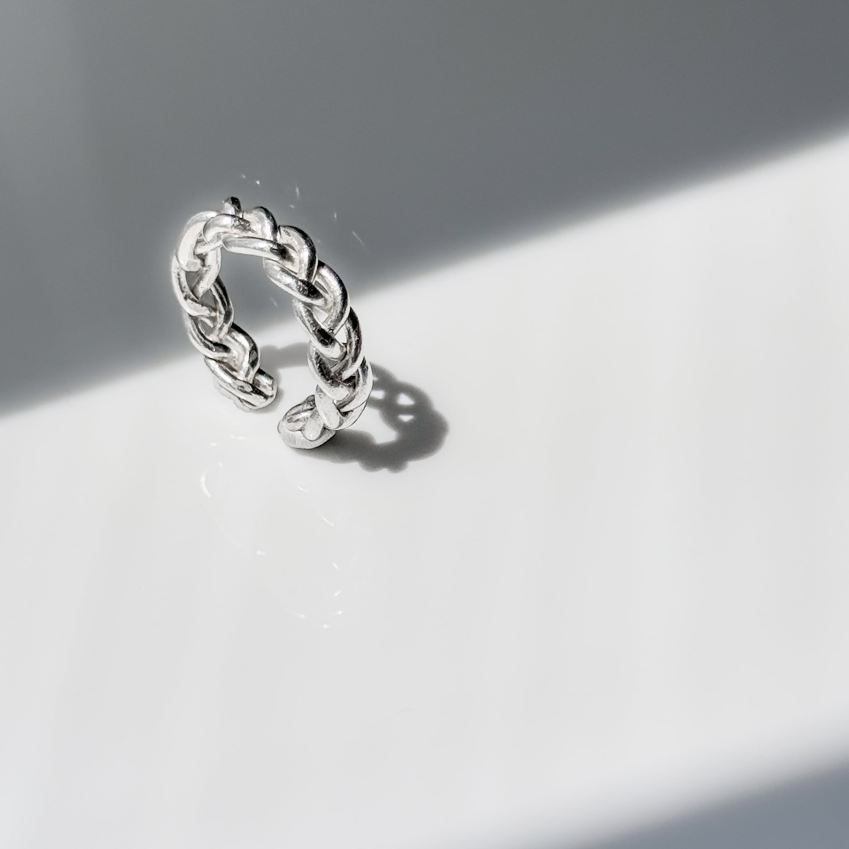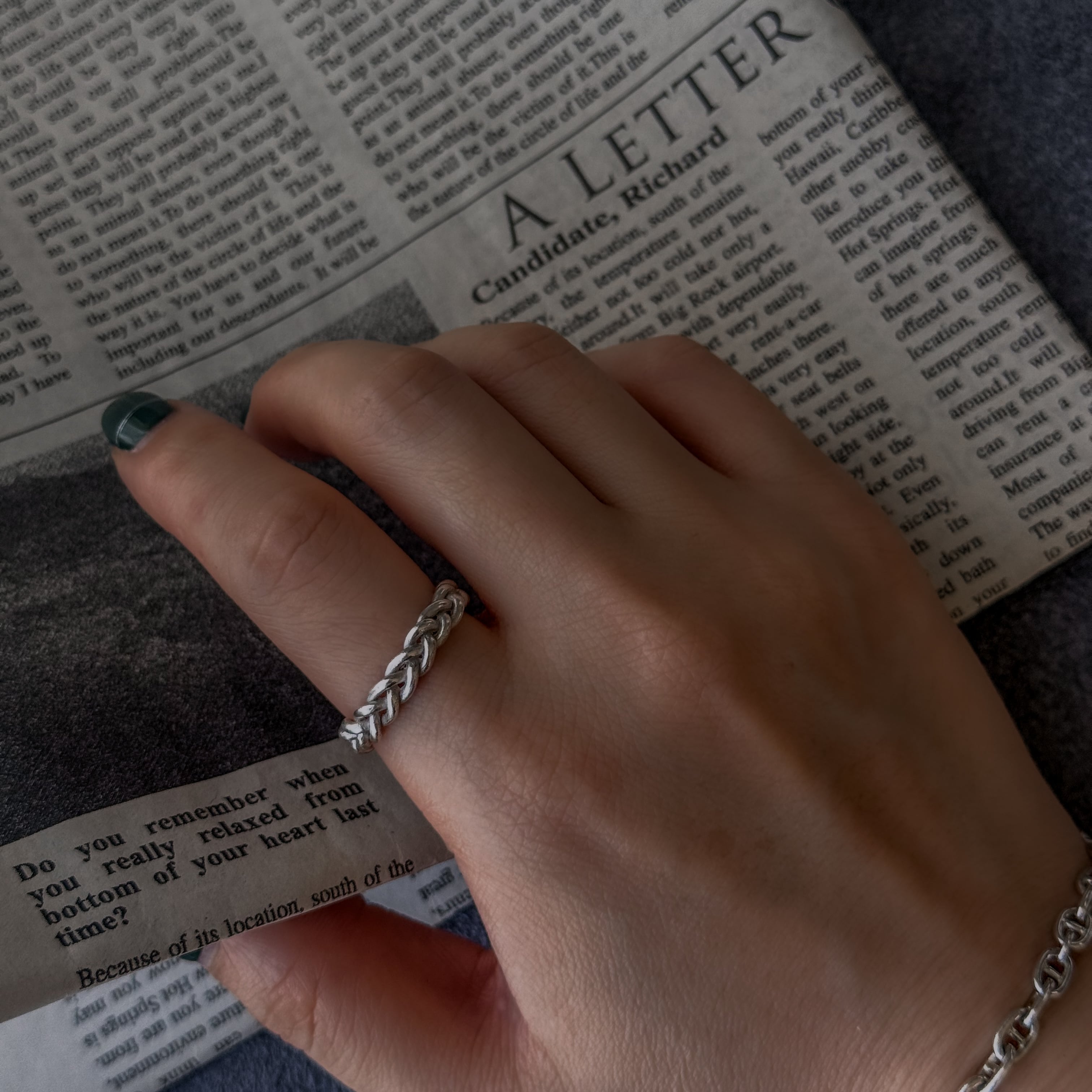ひとつで存在感がありながらも、他のリングとの重ねづけも楽しめる万能な一本です。