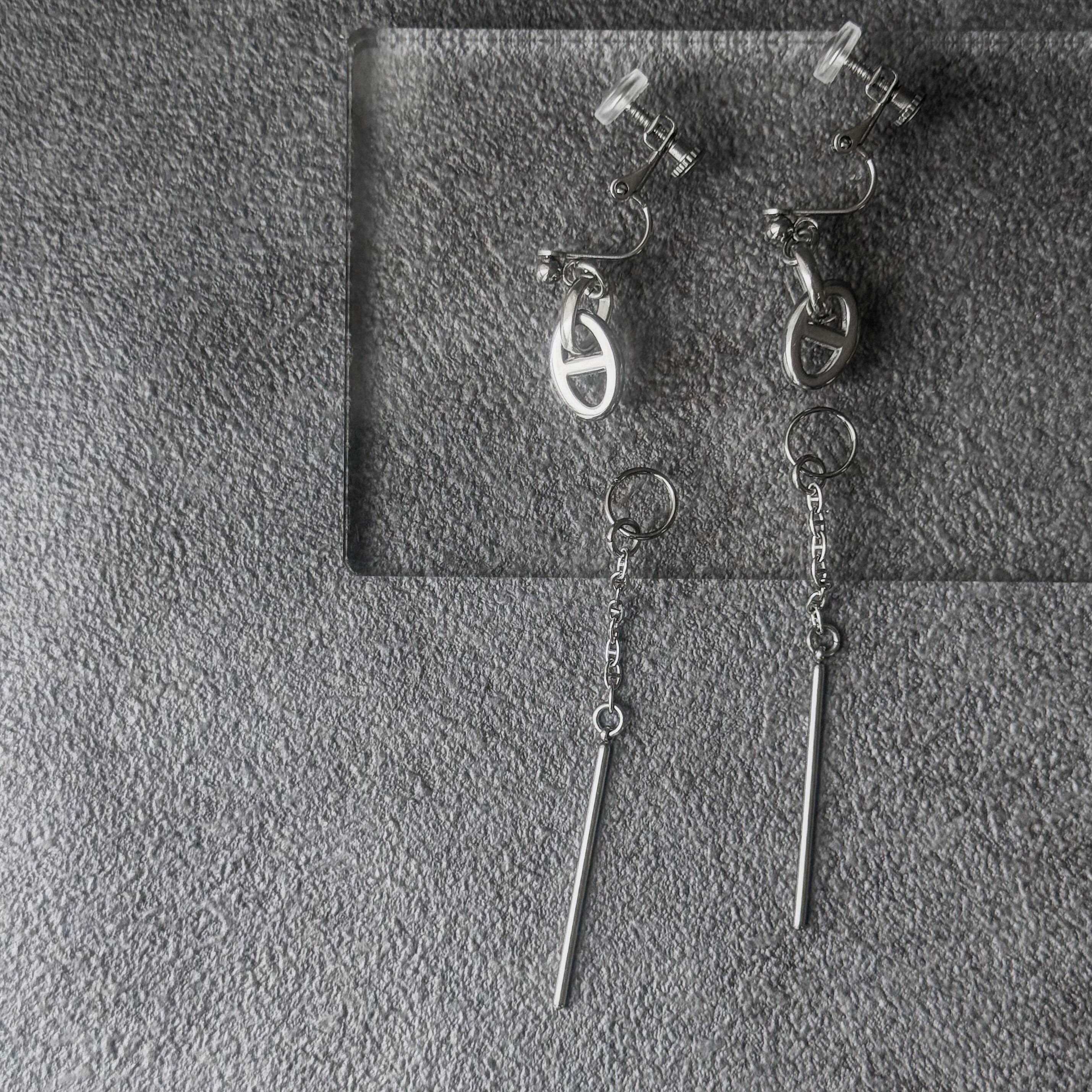 ピアスはスタッドタイプ、イヤリングはネジ式タイプです。
