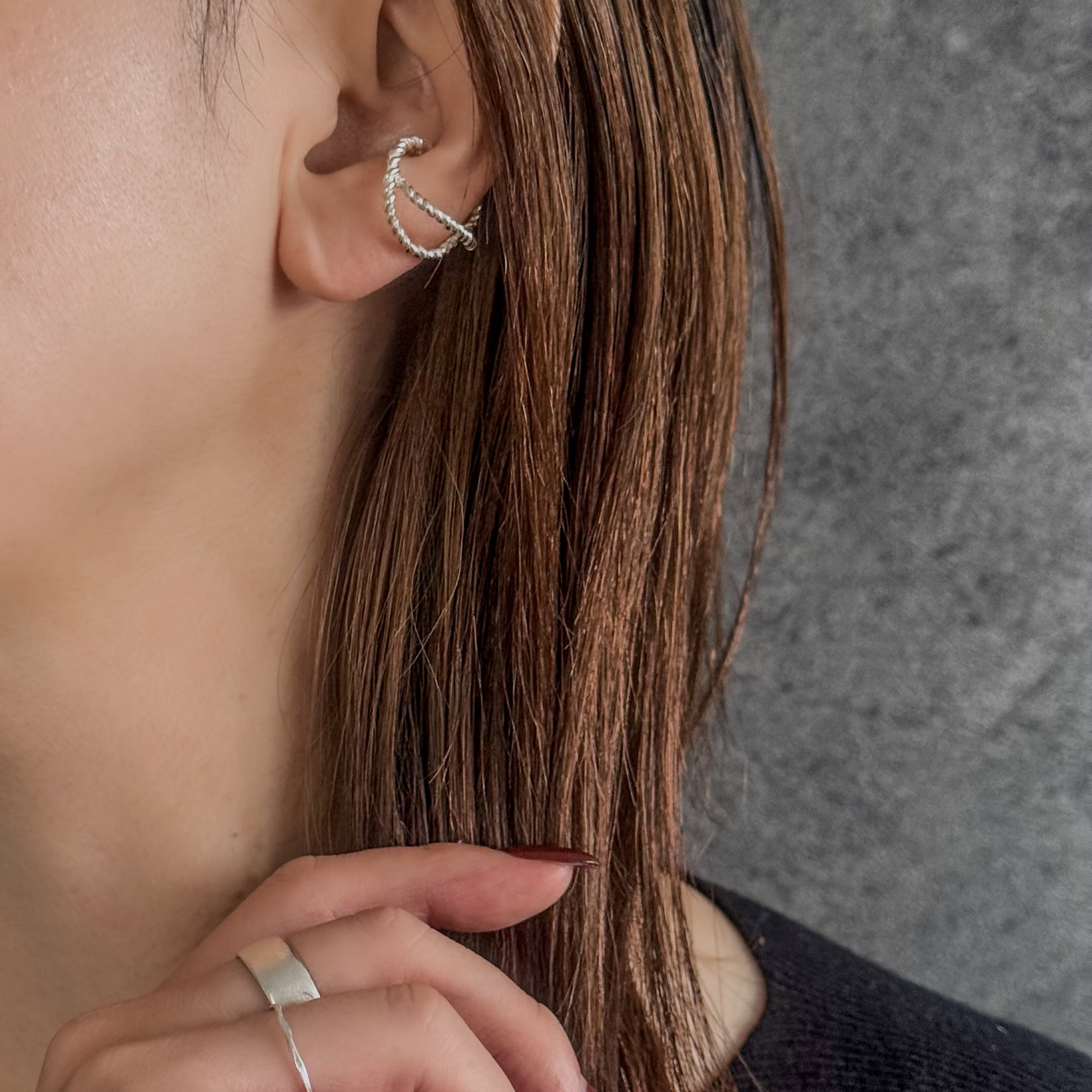 細やかなツイスト模様を、ゆるやかにカーブさせたイヤカフ。