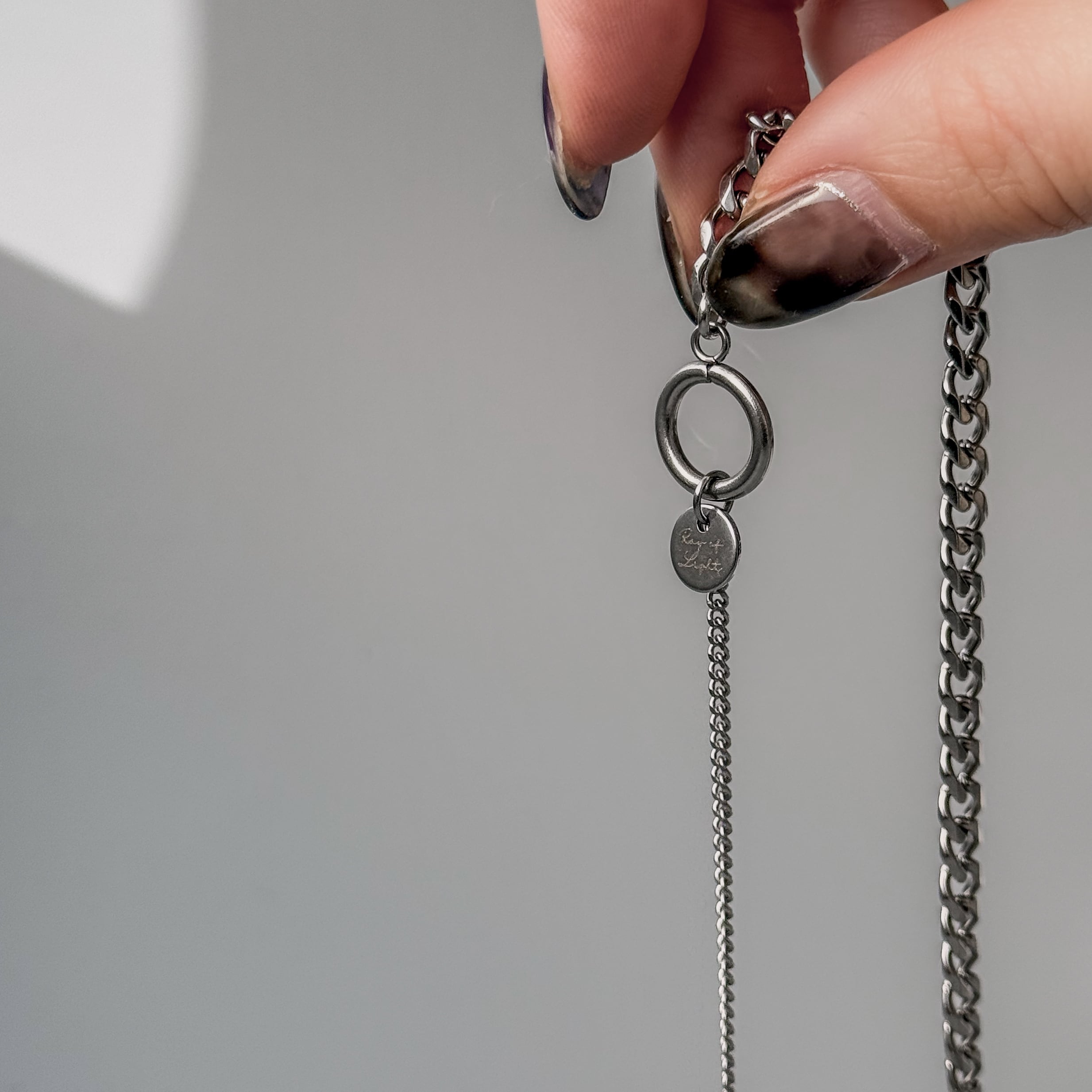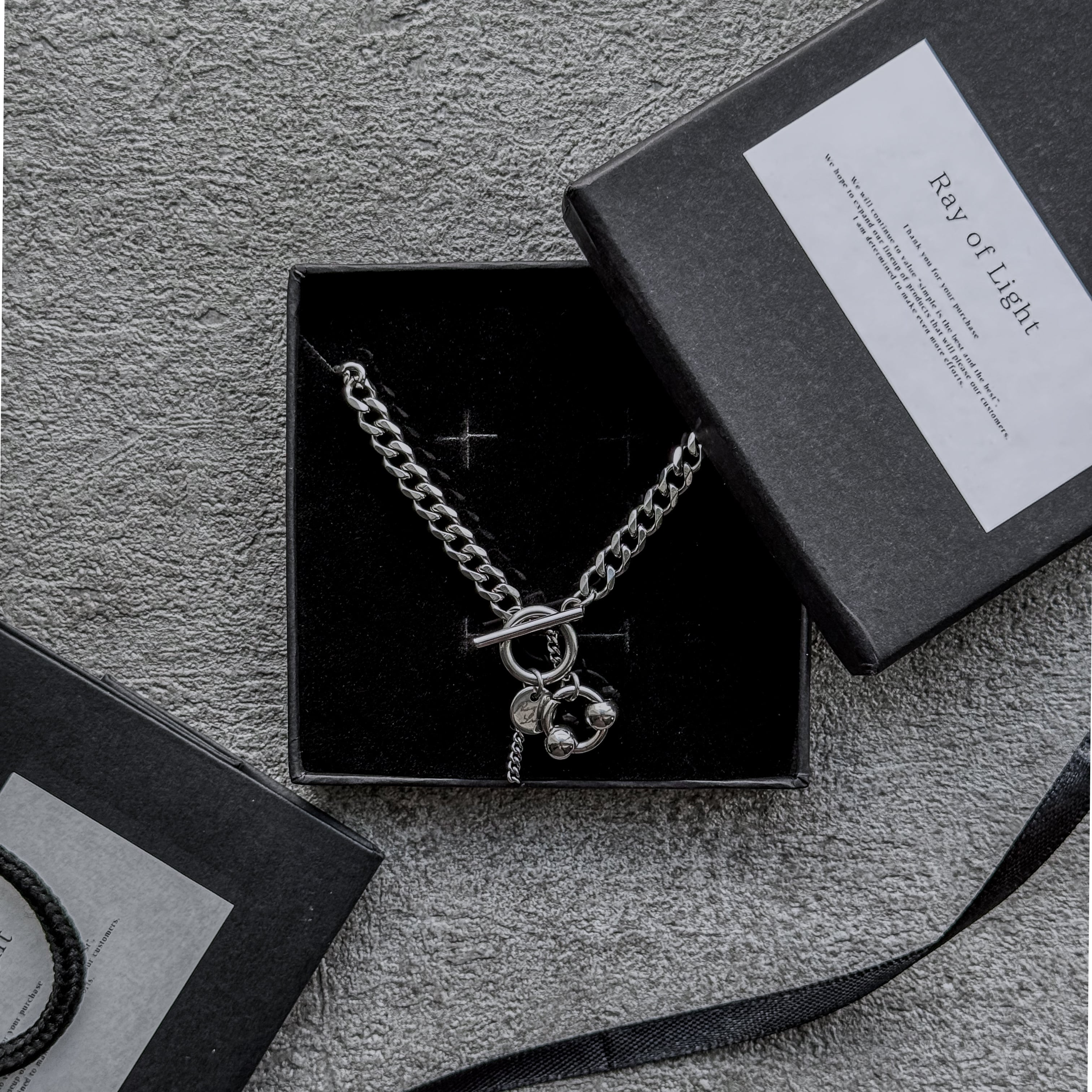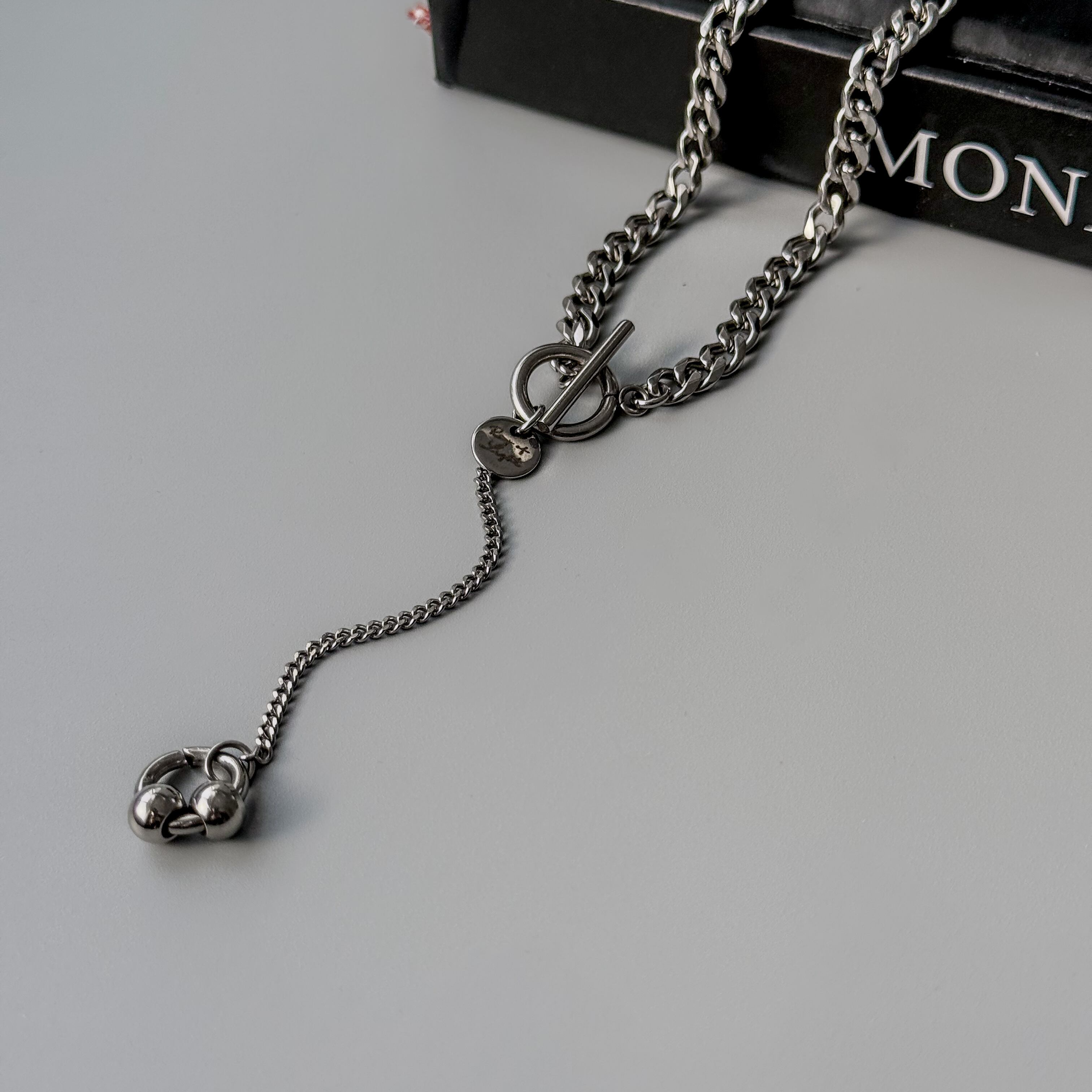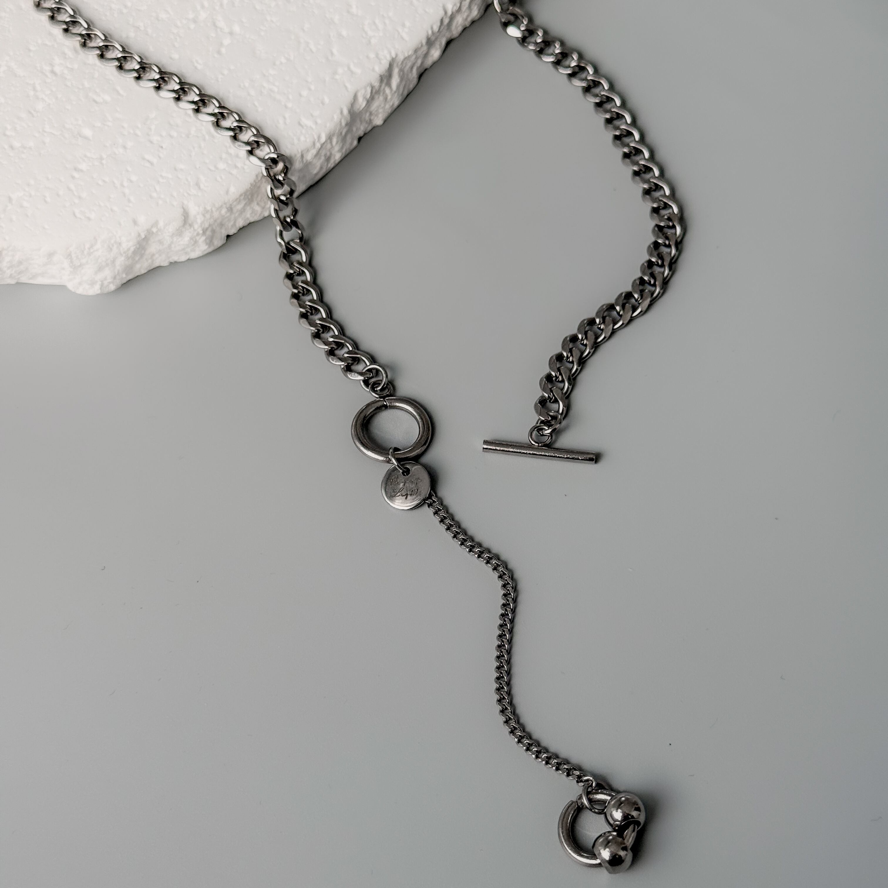 縦に落ちる細いチェーンが、歩いたときやふと視線を落とした瞬間に、静かに揺れて表情を添えます。