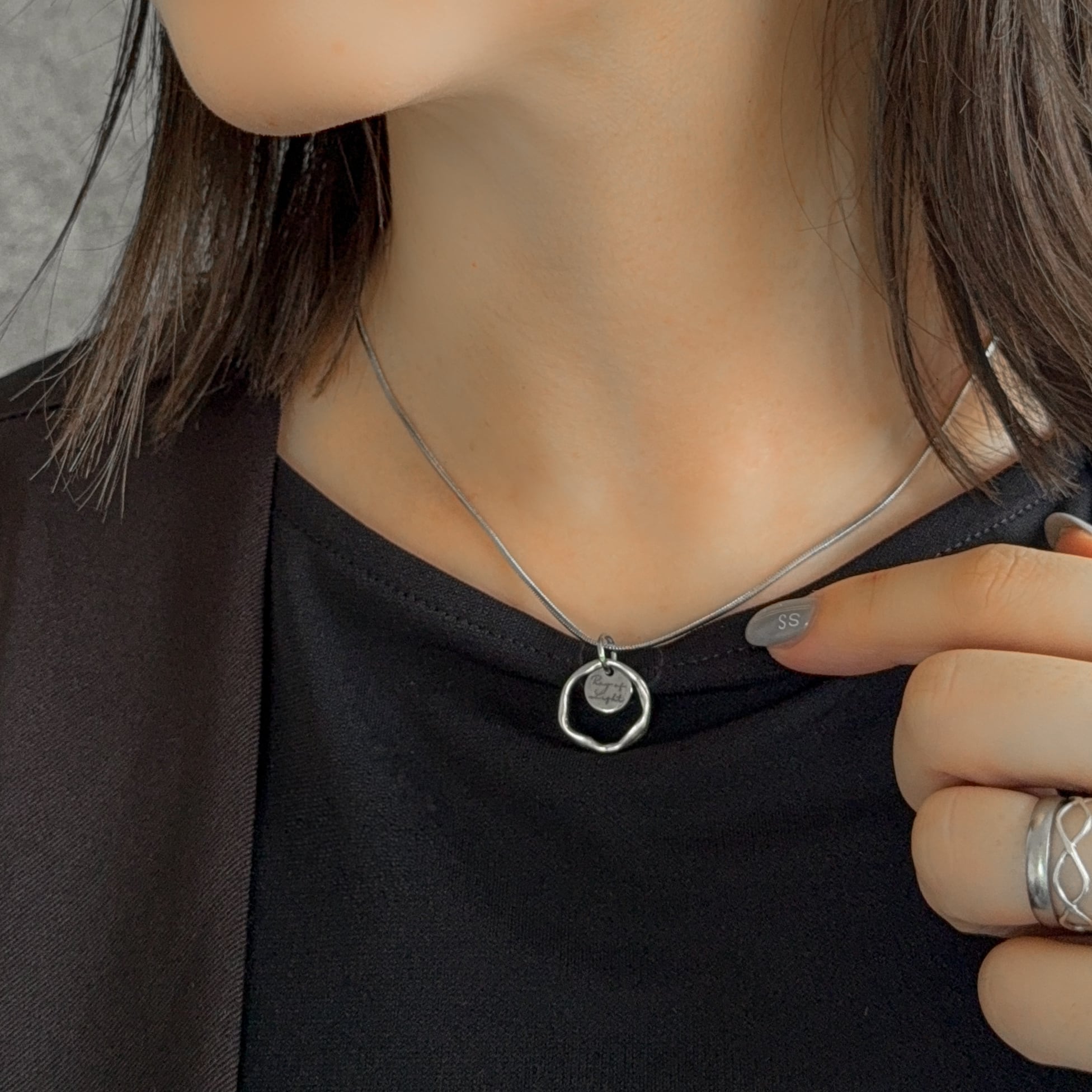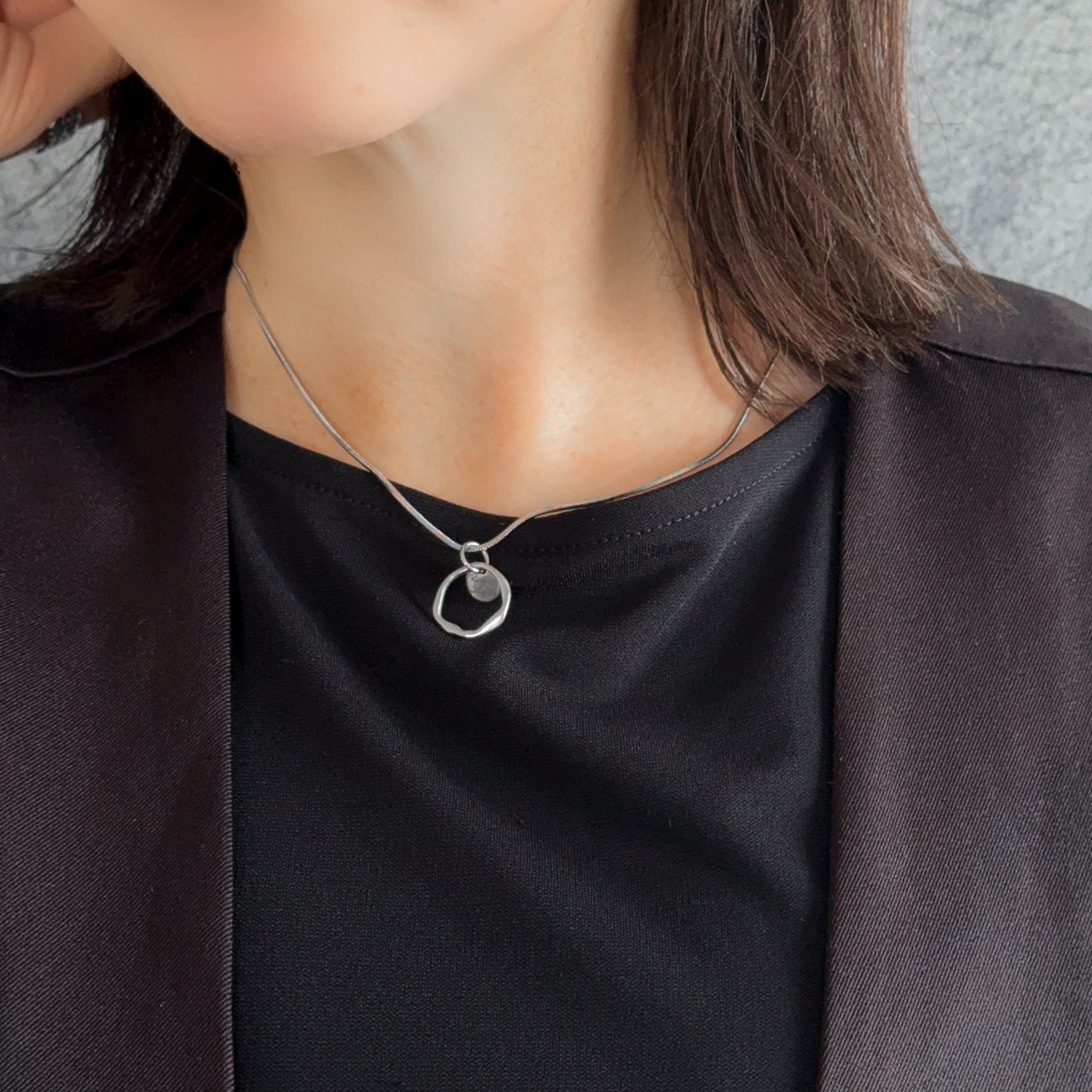 スネークチェーンならではのなめらかな質感が、動くたびに首元に自然な流れを生み出します。