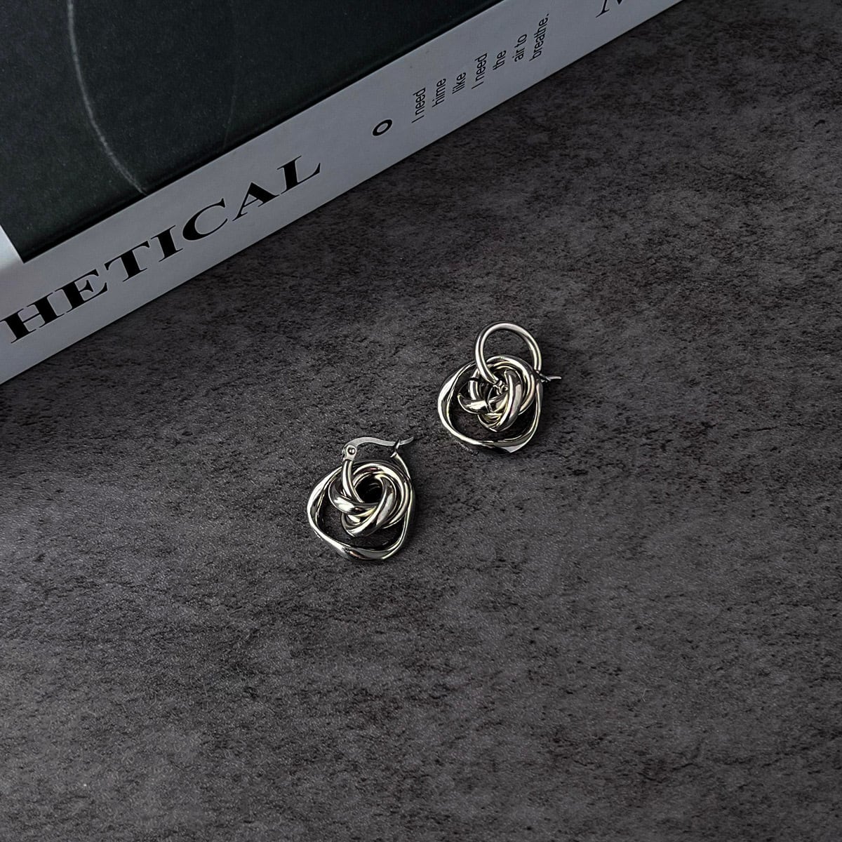 シルバーの2種類のリングを組み合わせたピアス・イヤリングです。