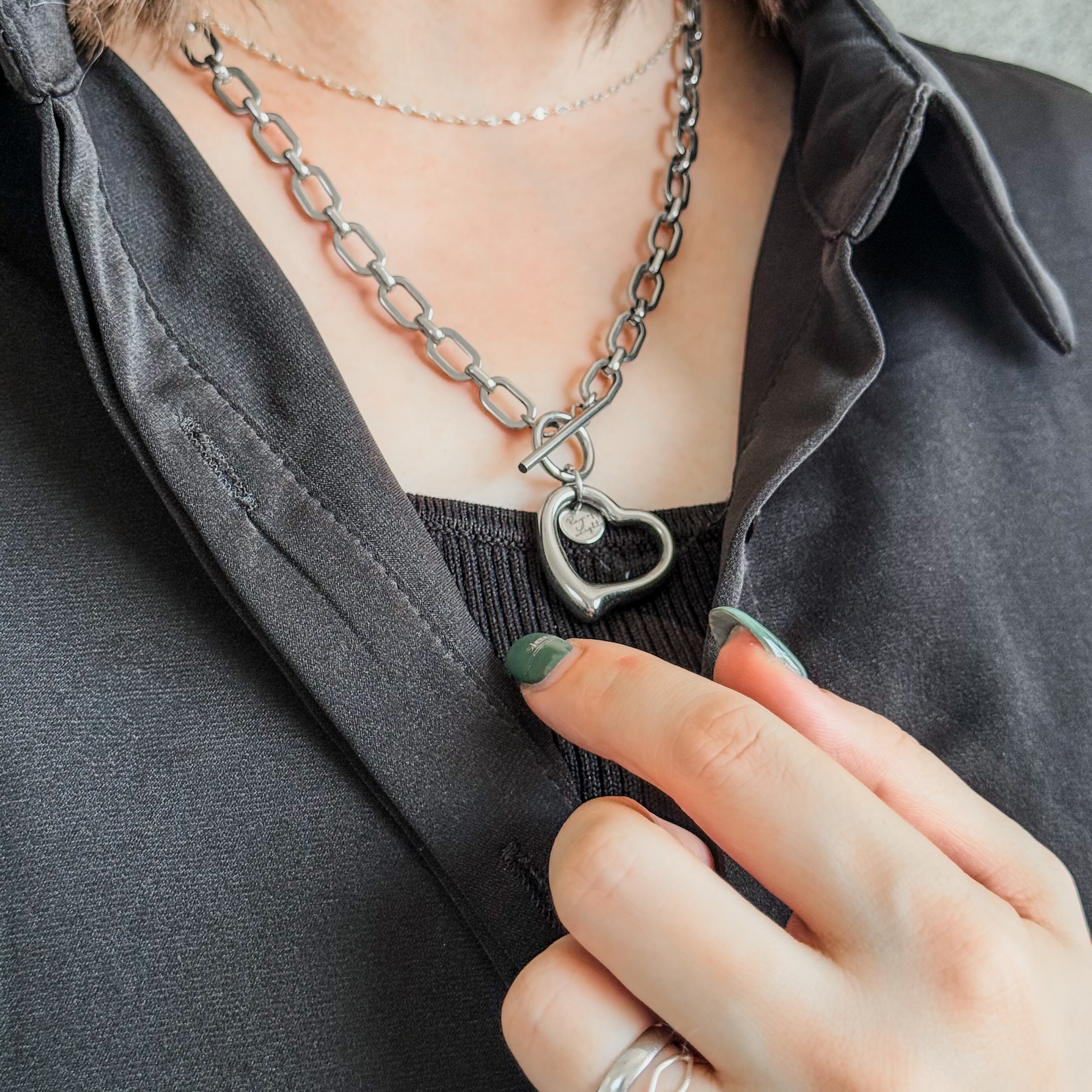 【再販】オールステンレス甘辛モードのハートネックレス